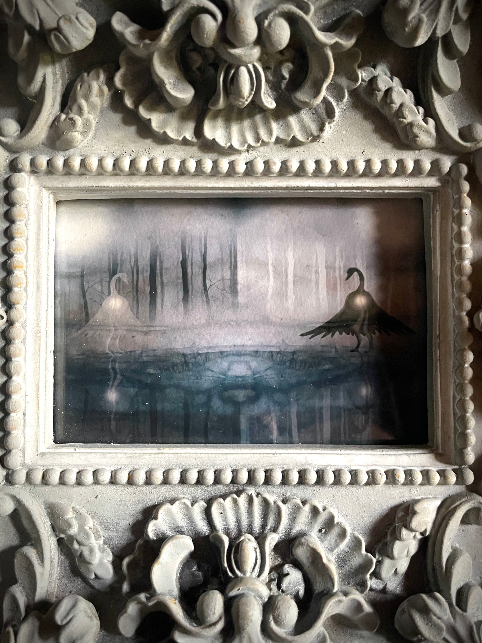 The vintage frame found in a flea market compliments the aesthetic of painting beautifully. Be it a gift to yourself or a loved one, Càraid makes for the perfect present.