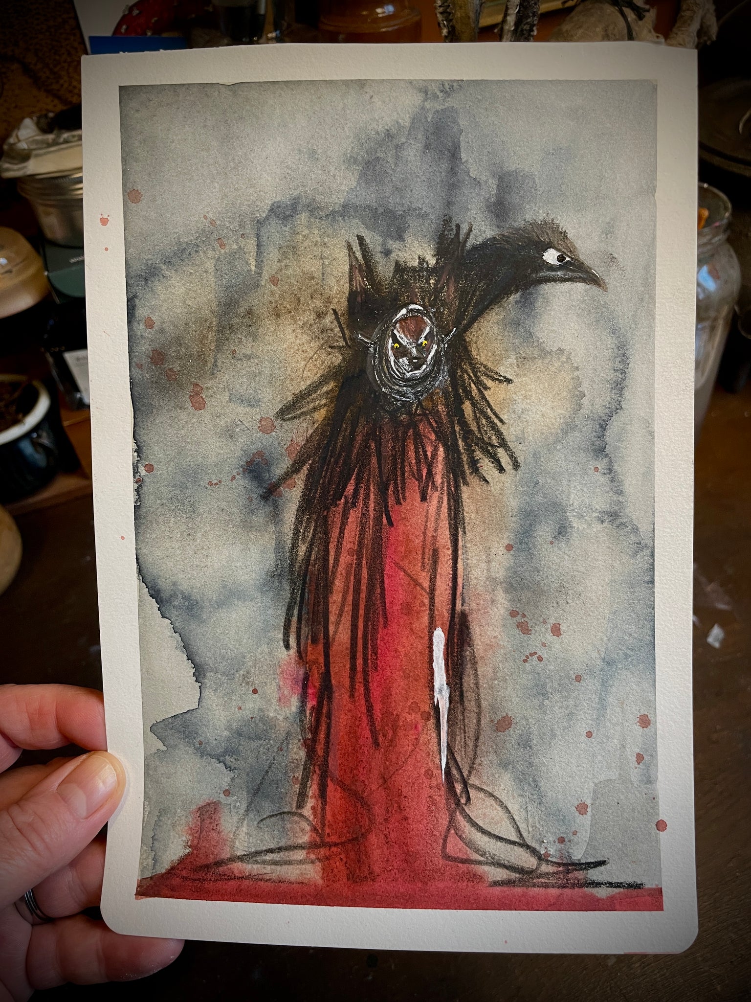 She dons her war paint and visits in various guises, subliminal almost. I wake from sleep and remember her features. The ravens that reside in the Pines behind my house, inch ever closer. She is there in the familiar faces of my Witch Sisters Tarot.